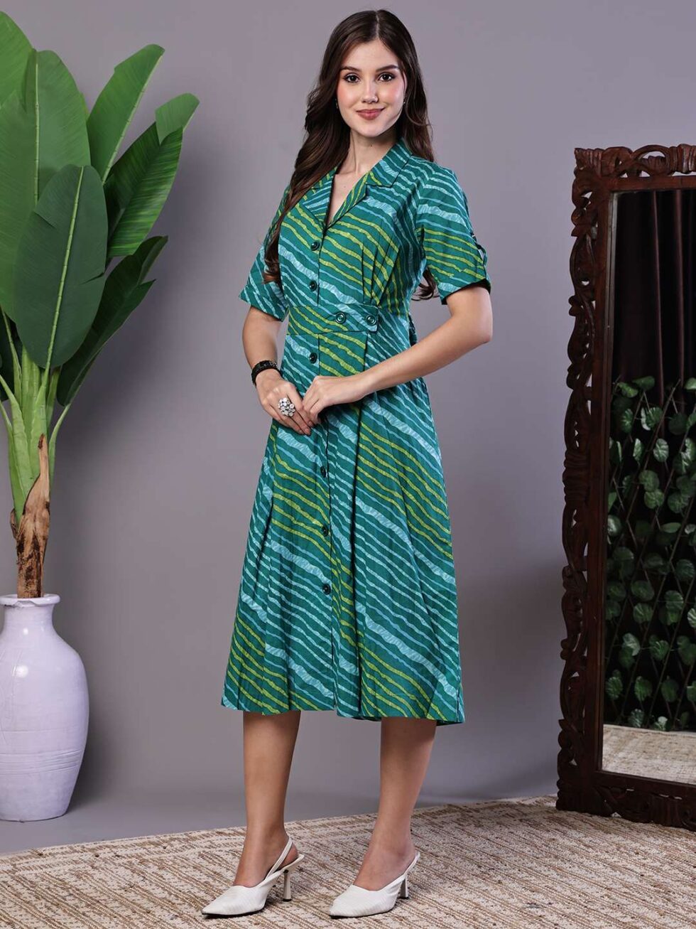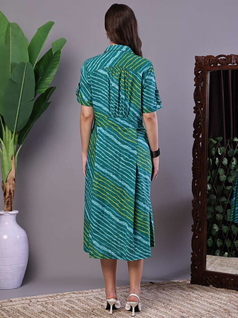 Women’s eal Green Striped Cotton Midi Shirt Dress